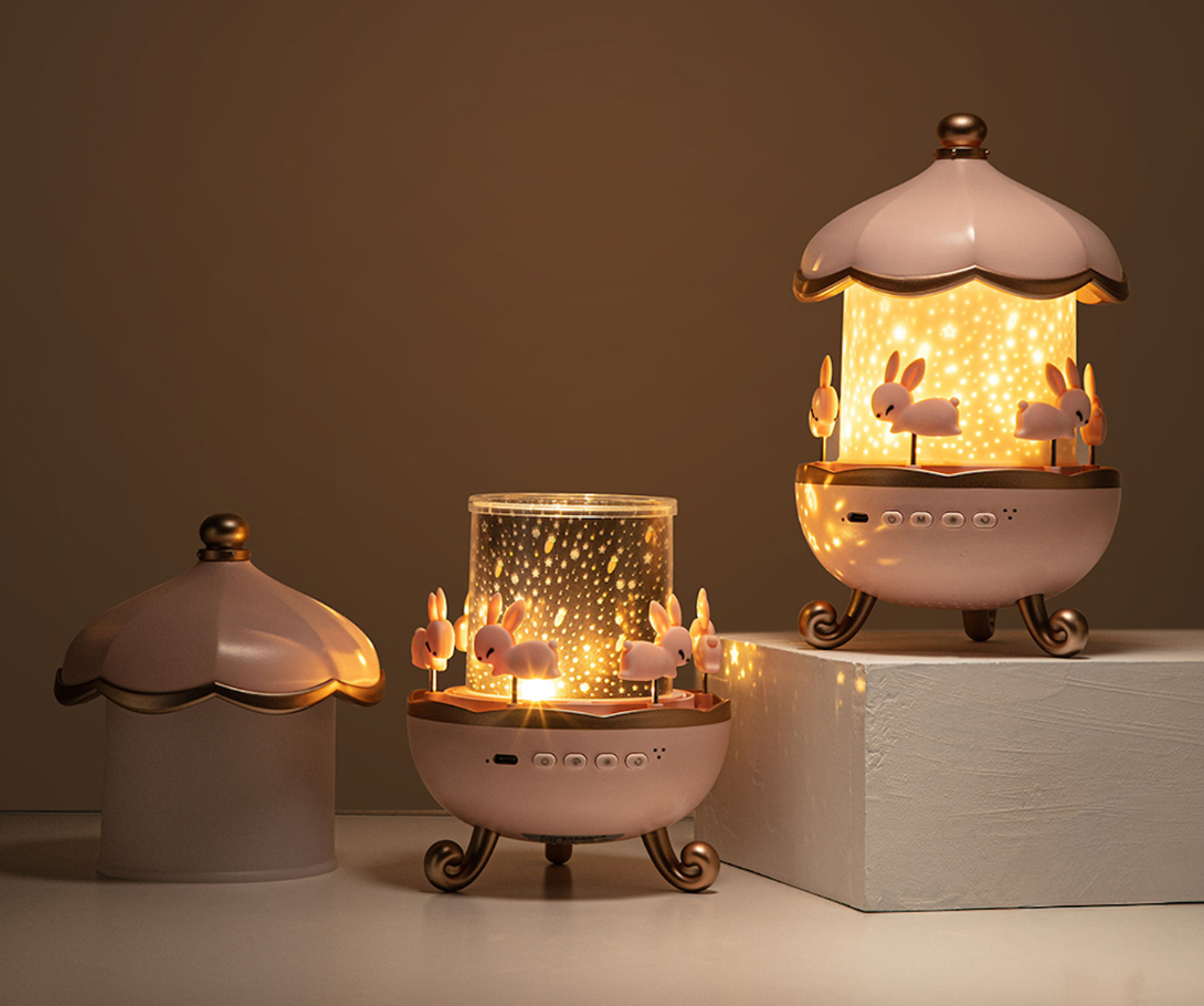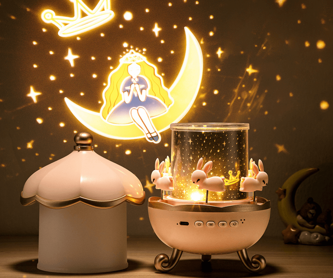 Durch abnehmen des süßen Lampenschirms, verwandelst Du das Nachtlicht in einen magischen Projektor, der das Herz Deines Kindes höher schlagen lässt.